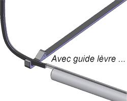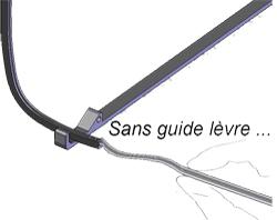 Le guide lèvre est composé d'un axe dans lequel la lèvre sera glissée ; ainsi guidée il sera très facile d'exercer une poussée pour la faire rentrer dans la gorge de la monture.